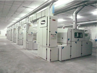 1.一條生產(chǎn)線一般供應(yīng)6-10臺(tái),由開(kāi)棉機(jī)至CF-940供棉量由1組連續(xù)供棉控制系統(tǒng)CF-40所管制,依實(shí)際產(chǎn)能自動(dòng)調(diào)節(jié)。使整條供棉壓力維持一定的水平。